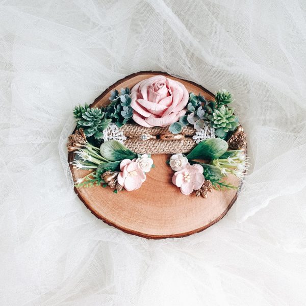 Less is more. Alas cincin berbahan potongan kayu asli dengan tampilan yang berkesan cozy. So rustic!Harga sudah termasuk dekorasi dan dapat dibuat sesuai dengan keinginanmu.Tidak termasuk perhiasan.